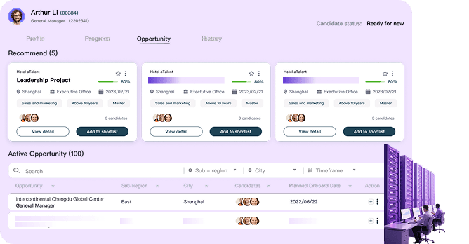 Turn everyday work into opportunities. The system suggests stretch assignments that align with employees' career goals while meeting business needs
